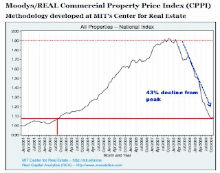 Negli Stati Uniti, cosi come in Europa, il settore immobiliare commerciale giochera’ ovviamente un importante ruolo nelle ulteriori perdite delle banche. Negli USA, in media, ha perso il 43% del suo valore comparato alle vette raggiunte nel 2007/2008. Basti valutare che l’importo totale dei mutui per gli immobili commerciali dichiarato nell’ottobre 2008, nel momento in cui esplose la crisi di Wall Street, ammontava a 3,5 trilioni di dollari, mentre i mutui subprime (il cui collasso era iniziato 18 mesi prima) ammontavano appena 1,5 trilioni di dollari. Al momento, stiamo entrando in un periodo analogo, preceduto da 18 mesi di continuo calo dei prezzi degli immobili commerciali statunitensi, anche se la concentrazione principale di rifinanziamenti e’ prevista per il 2011/2013. Le condizioni economiche estremamente difficili che il mercato statunitense attraversa attualmente amplificheranno gli effetti di questa bomba a orologeria: la crisi fa ticchettare piu’ velocemente il timer, e numerose banche di medie dimensioni avranno modo di rendersene conto entro la fine di quest’anno.